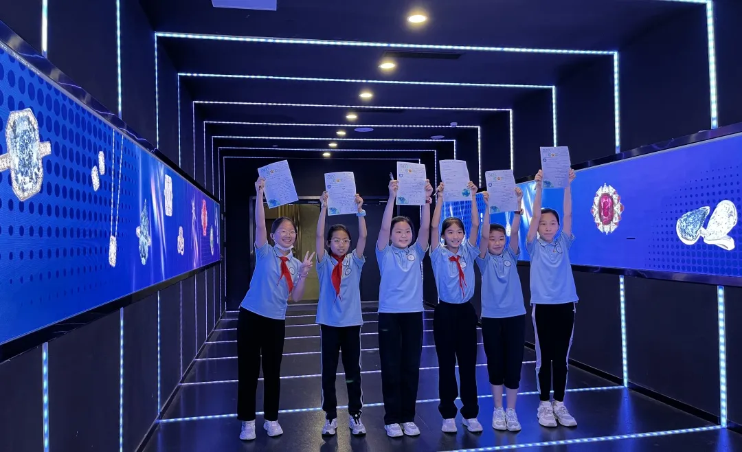 老师同学们到达后先在西美大厦一楼展厅跟随讲解员一同参观学习,了解地质学与钻石相关知识,完成学习记录卡。随后按照班级分为15人一组,由讲解员和带队教师一同带领到实验室参观实践,我院科研人员为同学们讲解激光切割机的简单工作原理;钻石扫描抛磨与首饰制作加工的流程;科普珠宝鉴定相关知识等。科普活动结束后,郑州中学第三附属小学分别为中国地质大学(北京)郑州研究院和郑州天健智慧园区运营管理有限公司、西美大厦运营服务中心送上锦旗,感谢对本次学校实践活动的支持。 党的二十大报告中强调“教育、科技、人才是全面建设社会主义现代化国家的基础性、战略性支撑”,首次将教育、科技、人才一体安排部署,赋予教育新的战略地位、历史使命和发展格局。本次地球宝藏科普行活动不仅丰富了学生们的科学知识,还激发了他们的科学兴趣和探索精神。我院将积极响应国家政策,开展各类科普活动,加强科普宣传,创新科普形式,为学生提供科学学习与实践的平台,践行社会服务职能,努力将科学的种子播撒进每一个孩子的心田。